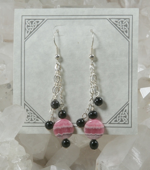 Rhodochrosite and Onyx Earrings