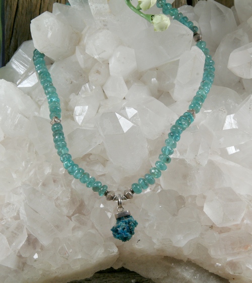 Apatite (gemmy) Necklace with Cavansite Pendant